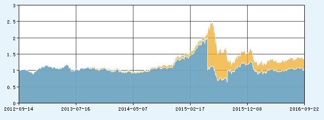 注:当基金未分红时,份额净值和累计份额净值重合。若途中走势线某日大幅下跌,则可能该产品进行了分红或拆分拆算。