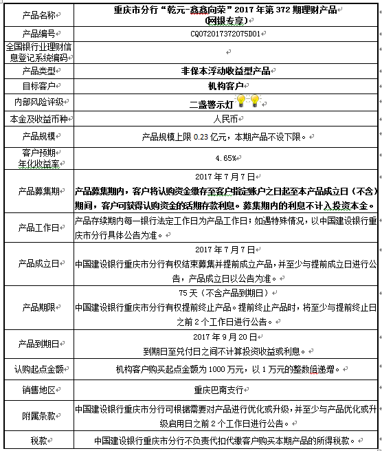 3.中国建设银行重庆市分行可根据市场情况等调整产品规模上、下限,并最迟于调整规模上下限当日进行公告。