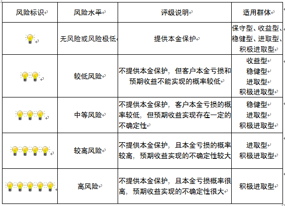 本产品为非保本浮动收益型理财产品,不保证本金和收益,请您充分认识投资风险,谨慎投资。本期产品期限为42天(中国建设银行有权对产品进行展期或提前终止),存续期内,产品不接受申购或赎回申请。本期产品内部风险评级级别为二盏警示灯,风险水平属于较低风险。最不利情况下,您将损失全部收益甚至包括全部本金。本理财产品适用于收益型、稳健型、进取型 、积极进取型客户。