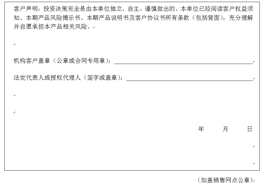 在您签署《中国建设银行股份有限公司理财产品客户协议书》前,应当仔细阅读客户权益须知、本风险揭示书及本产品的产品说明书的全部内容,同时向中国建设银行重庆市分行了解本产品的其他相关信息,并自己独立做出是否认(申)购本产品的决定。