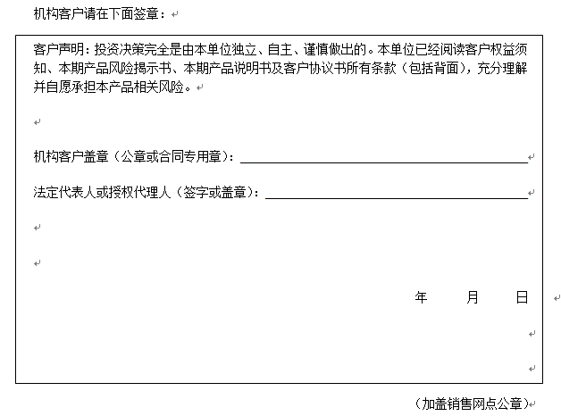 您签署本风险揭示书、客户协议书,并将资金委托给中国建设银行运作是您真实的意思表示。本风险揭示书及相应的客户协议书、产品说明书、客户权益须知将共同构成贵我双方理财合同的有效组成部分。