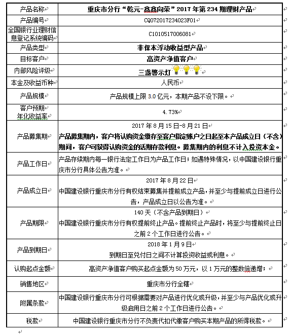 2017年第234期理财产品说明书