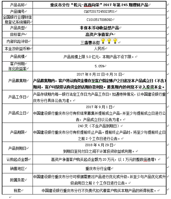 2017年第245期理财产品说明书
