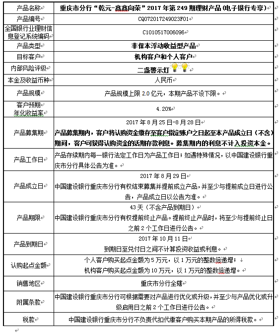 2017年第249期理财产品说明书