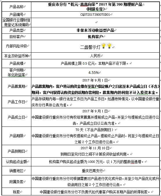 2017年第390期理财产品说明书