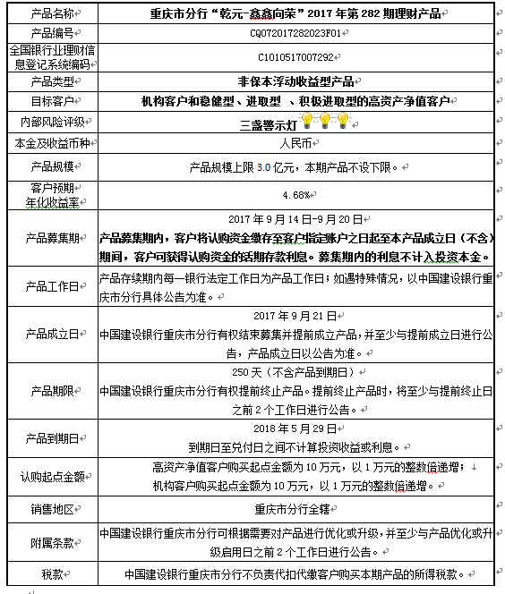 2017年第282期理财产品说明书