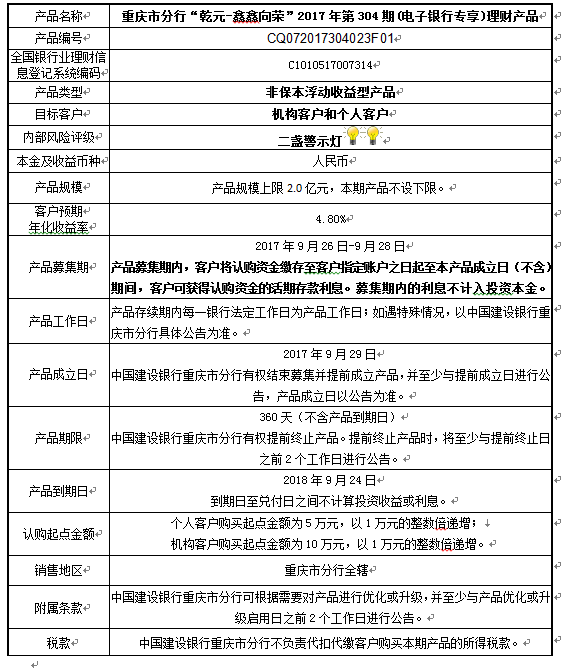 3.中国建设银行重庆市分行可根据市场情况等调整产品规模上、下限,并最迟于调整规模上下限当日进行公告。