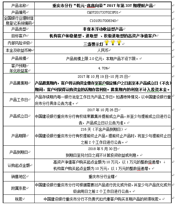 2017年第337期理财产品说明书