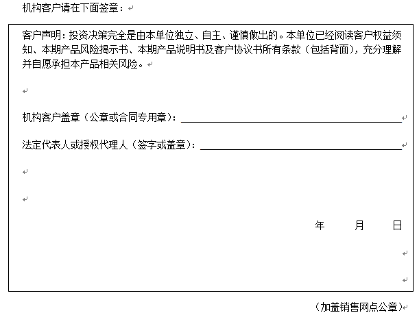 您签署本风险揭示书、客户协议书,并将资金委托给中国建设银行运作是您真实的意思表示。本风险揭示书及相应的客户协议书、产品说明书、客户权益须知将共同构成贵我双方理财合同的有效组成部分。