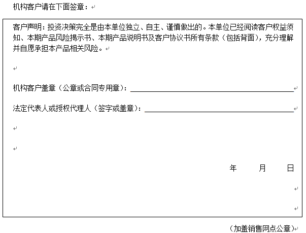 在您签署《中国建设银行股份有限公司理财产品客户协议书》前,应当仔细阅读客户权益须知、本风险揭示书及本产品的产品说明书的全部内容,同时向中国建设银行重庆市分行了解本产品的其他相关信息,并自己独立做出是否认(申)购本产品的决定。