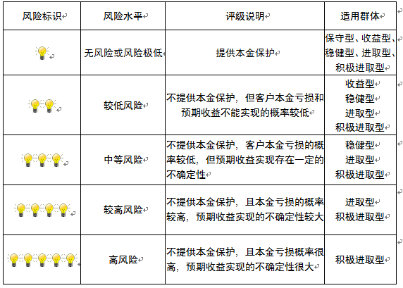,风险水平属于较低风险。最不利情况下,您将损失全部收益甚至包括全部本金。本理财产品适用于收益型、稳健型、进取型 、积极进取型客户。