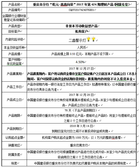 3.中国建设银行重庆市分行可根据市场情况等调整产品规模上、下限,并最迟于调整规模上下限当日进行公告。