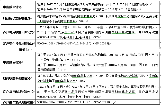 假设客户投资本金5万元,实际参与理财的天数20天,实际年化收益率4.00%。