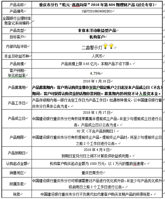 2018年第604期理财产品说明书