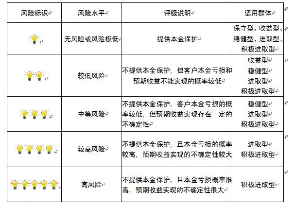 ,风险水平属于较低风险。最不利情况下,您将损失全部收益甚至包括全部本金。本理财产品适用于收益型、稳健型、进取型 、积极进取型客户。