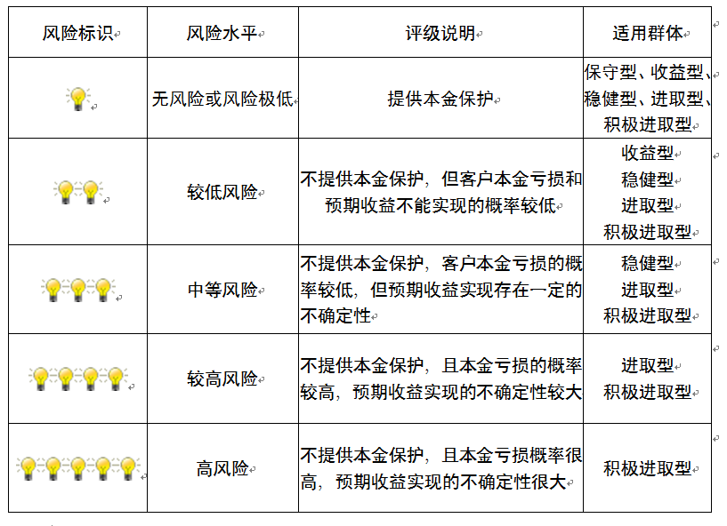 ,风险水平属于较低风险。最不利情况下,您将损失全部收益甚至包括全部本金。本理财产品适用于收益型、稳健型、进取型 、积极进取型客户。