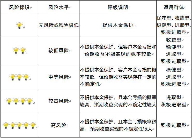 ,风险水平属于较低风险。最不利情况下,您将损失全部收益甚至包括全部本金。本理财产品适用于收益型、稳健型、进取型 、积极进取型客户。