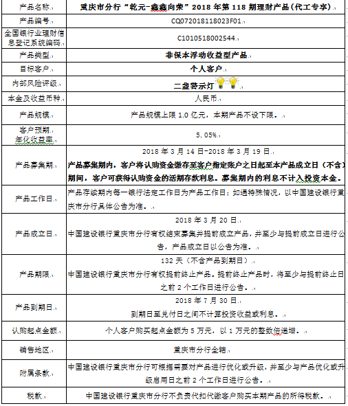 2018年第118期理财产品说明书