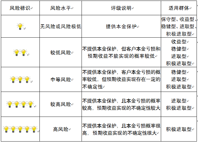 ,风险水平属于较低风险。最不利情况下,您将损失全部收益甚至包括全部本金。本理财产品适用于收益型、稳健型、进取型 、积极进取型客户。