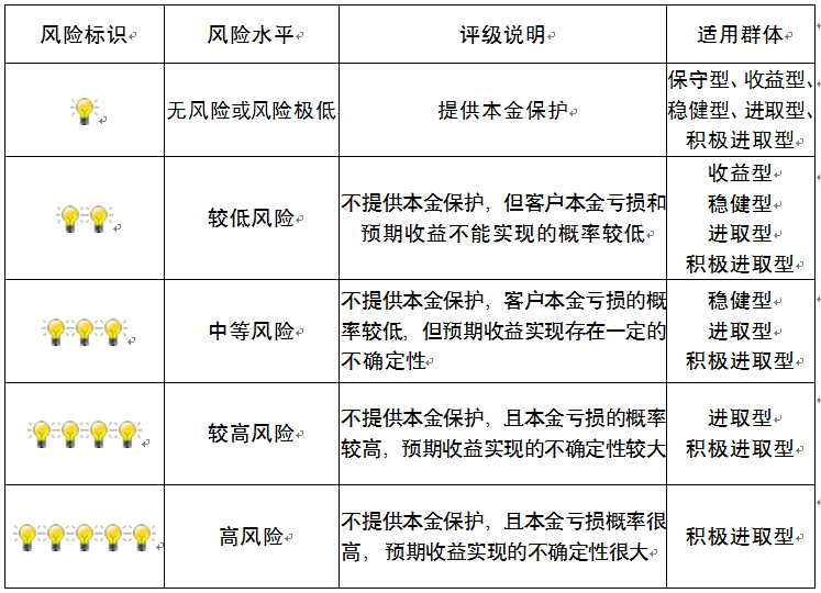 ,风险水平属于较低风险。最不利情况下,您将损失全部收益甚至包括全部本金。本理财产品适用于收益型、稳健型、进取型 、积极进取型客户。