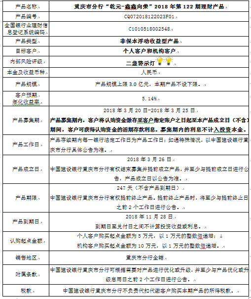 3.中国建设银行重庆市分行可根据市场情况等调整产品规模上、下限,并最迟于调整规模上下限当日进行公告。