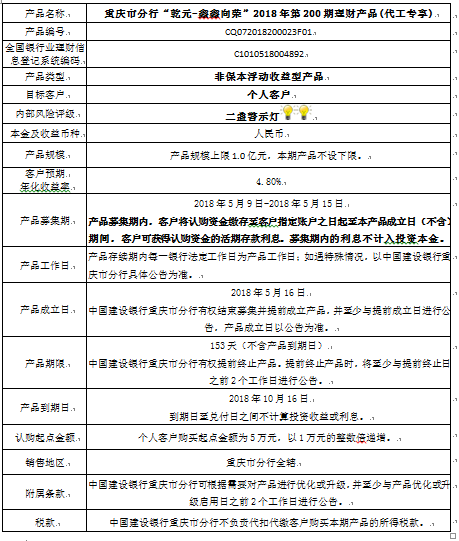 3.中国建设银行重庆市分行可根据市场情况等调整产品规模上、下限,并最迟于调整规模上下限当日进行公告。