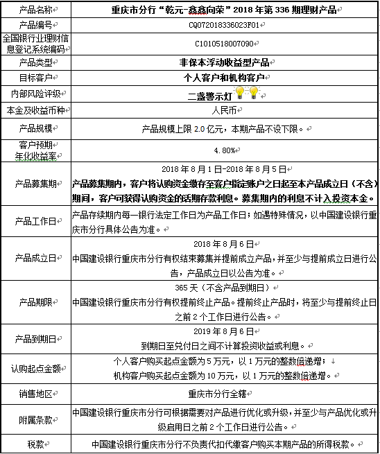3.中国建设银行重庆市分行可根据市场情况等调整产品规模上、下限,并最迟于调整规模上下限当日进行公告。