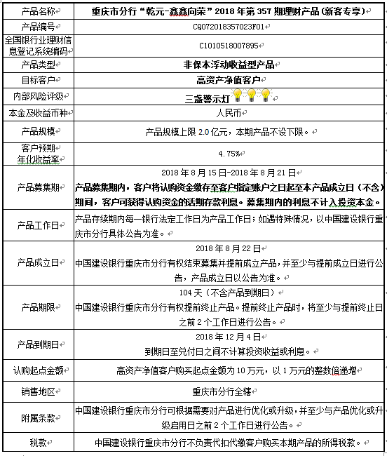 2018年第357期理财产品说明书