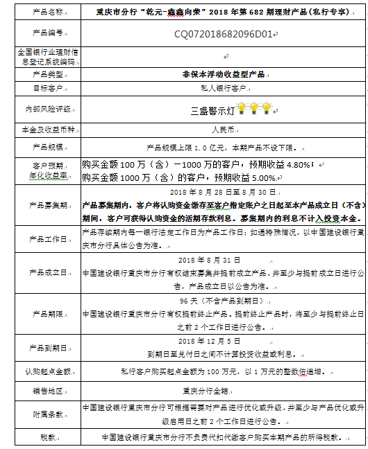 3.中国建设银行重庆市分行可根据市场情况等调整产品规模上、下限,并最迟于调整规模上下限当日进行公告。