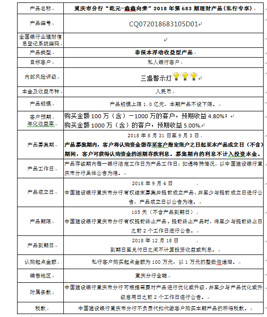 3.中国建设银行重庆市分行可根据市场情况等调整产品规模上、下限,并最迟于调整规模上下限当日进行公告。
