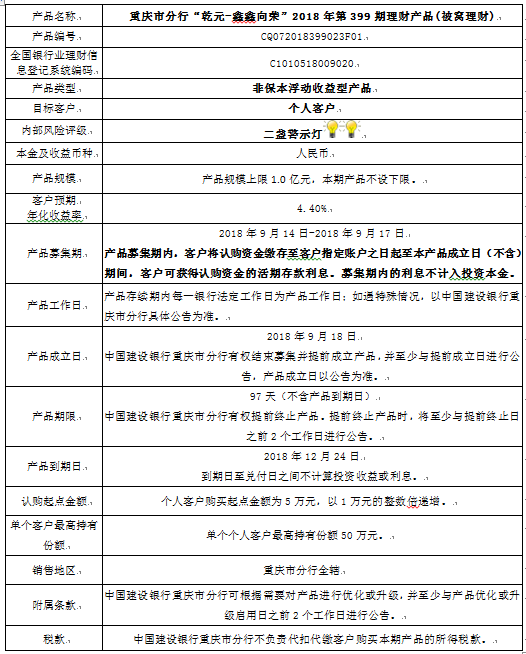 3.中国建设银行重庆市分行可根据市场情况等调整产品规模上、下限,并最迟于调整规模上下限当日进行公告。