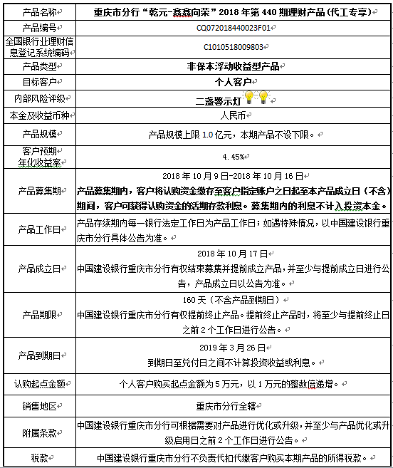 2018年第440期理财产品说明书