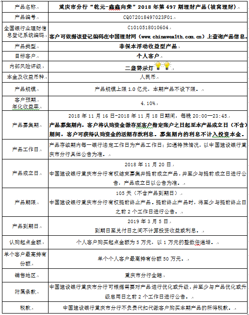 3.中国建设银行重庆市分行可根据市场情况等调整产品规模上、下限,并最迟于调整规模上下限当日进行公告。