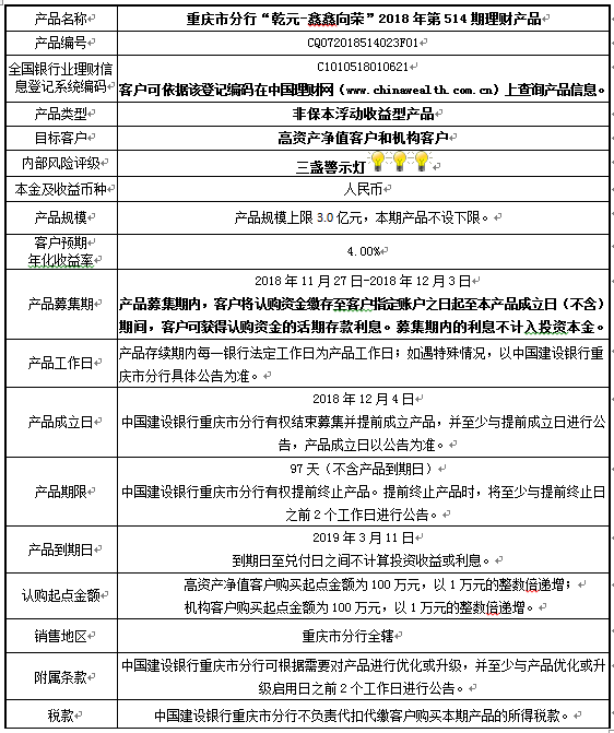 3.中国建设银行重庆市分行可根据市场情况等调整产品规模上、下限,并最迟于调整规模上下限当日进行公告。