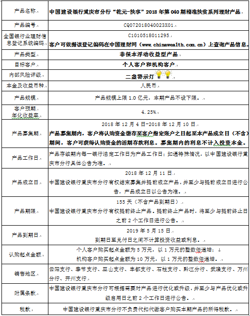 2018年第040期精准扶贫系列理财产品说明书