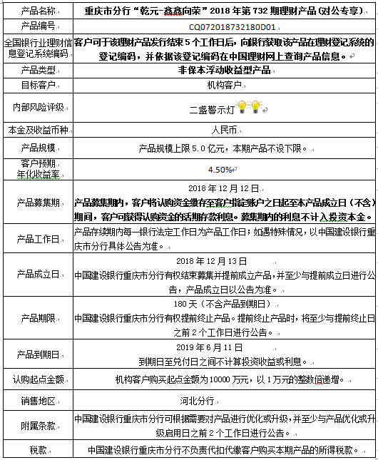 3.中国建设银行重庆市分行可根据市场情况等调整产品规模上、下限,并最迟于调整规模上下限当日进行公告。