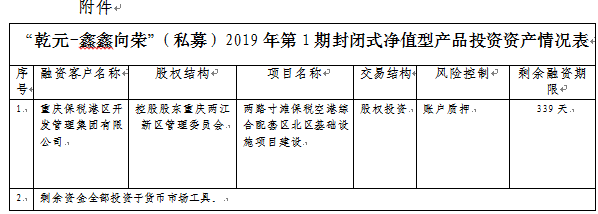 中国建设银行重庆市分行“乾元-鑫鑫向荣”(私募)2019年