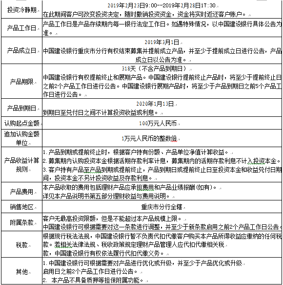 1.本产品不保障本金和收益安全,中国建设银行重庆市分行发行本产品不代表对本产品的任何保本或收益承诺。