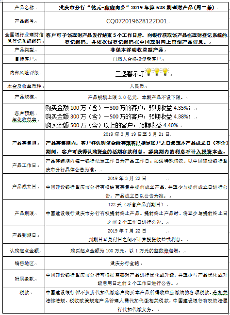3.中国建设银行重庆市分行可根据市场情况等调整产品规模上、下限,并最迟于调整规模上下限当日进行公告。