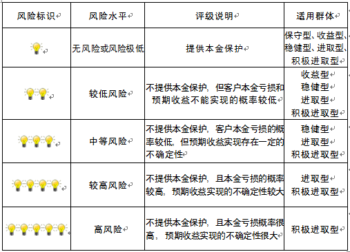本产品为非保本浮动收益型理财产品,不保证本金和收益,请您充分认识投资风险,谨慎投资。本期产品期限为270天(中国建设银行有权对产品进行展期或提前终止),存续期内,产品不接受申购或赎回申请。本期产品内部风险评级级别为三盏警示灯 ,风险水平属于中等风险。最不利情况下,您将损失全部收益甚至包括全部本金。本理财产品适用于稳健型、进取型 、积极进取型客户。