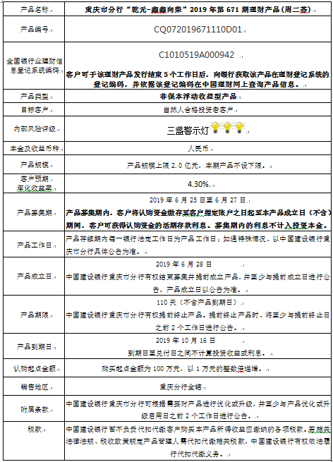 2019年第671期理财产品说明书