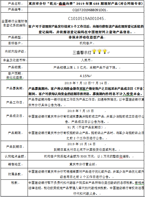 3.中国建设银行重庆市分行可根据市场情况等调整产品规模上、下限,并最迟于调整规模上下限当日进行公告。