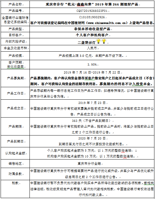 2019年第266期理财产品说明书