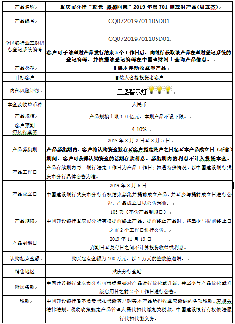 2019年第701期理财产品说明书