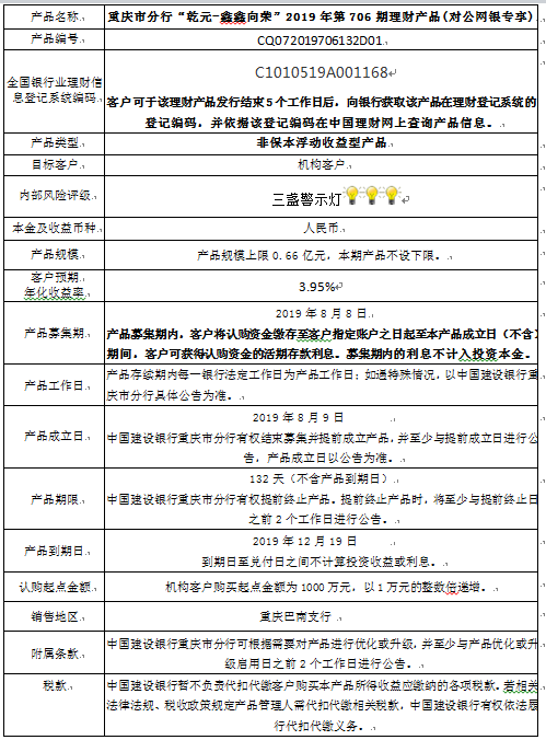3.中国建设银行重庆市分行可根据市场情况等调整产品规模上、下限,并最迟于调整规模上下限当日进行公告。