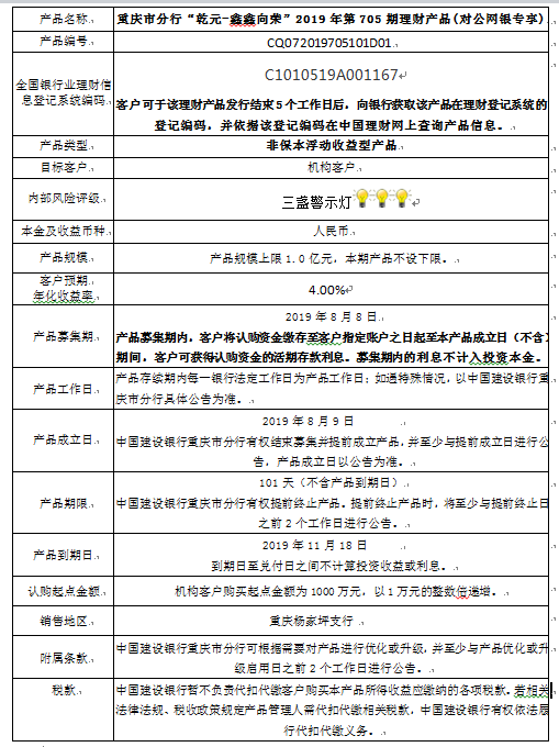 2019年第705期理财产品说明书