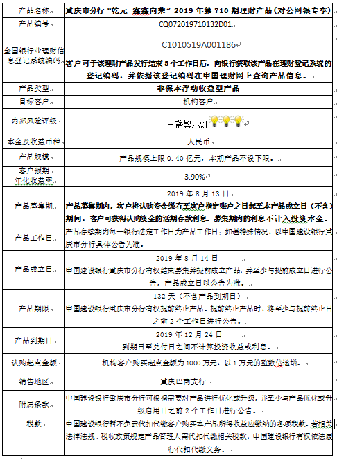 2019年第710期理财产品说明书