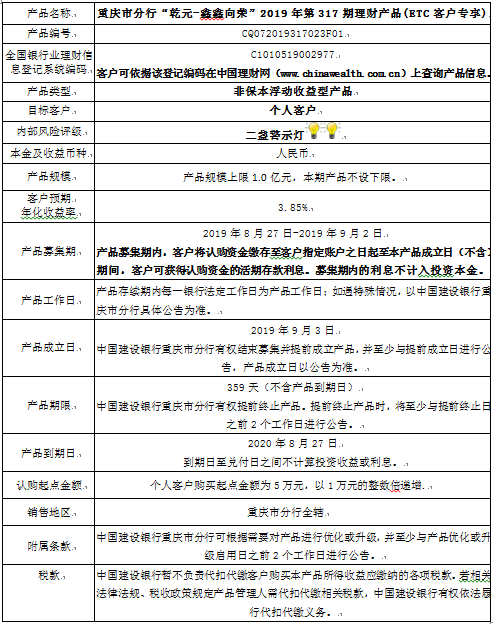 3.中国建设银行重庆市分行可根据市场情况等调整产品规模上、下限,并最迟于调整规模上下限当日进行公告。