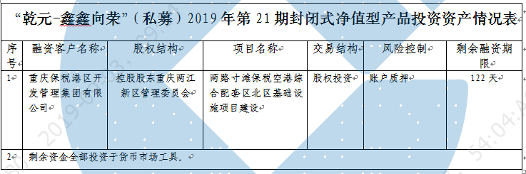 中国建设银行重庆市分行“乾元-鑫鑫向荣”(私募)2019年