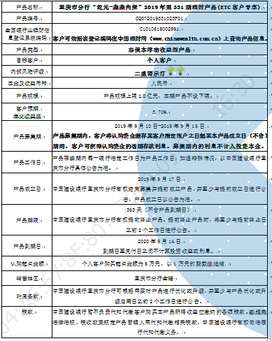 3.中国建设银行重庆市分行可根据市场情况等调整产品规模上、下限,并最迟于调整规模上下限当日进行公告。